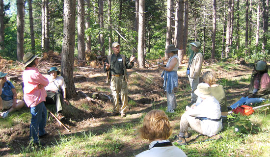 The July 15th session of Reading the Landscape 2006: The Forested Landscape featured basketmaker Nancy Stoneman and forester Byron Sailor at GLC’s Bammert Farm.