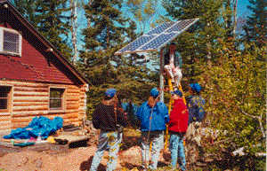In the fall of 1999, Michigan Tech students, Sam Darling, Shawn Isenhoff, Lesley Knoebel, Kurt LaFrance, Kayla Manz, and Heather Rebo, under the supervision of Dr. Leonard Bohmann, began the planning and design work for an alternative energy source to benefit the GLC's education program. The Noblet Field Station which serves as overnight accommodation and classroom for students had no electrical power. A limited electrical power supply was needed to power equipment occasionally brought to the site.